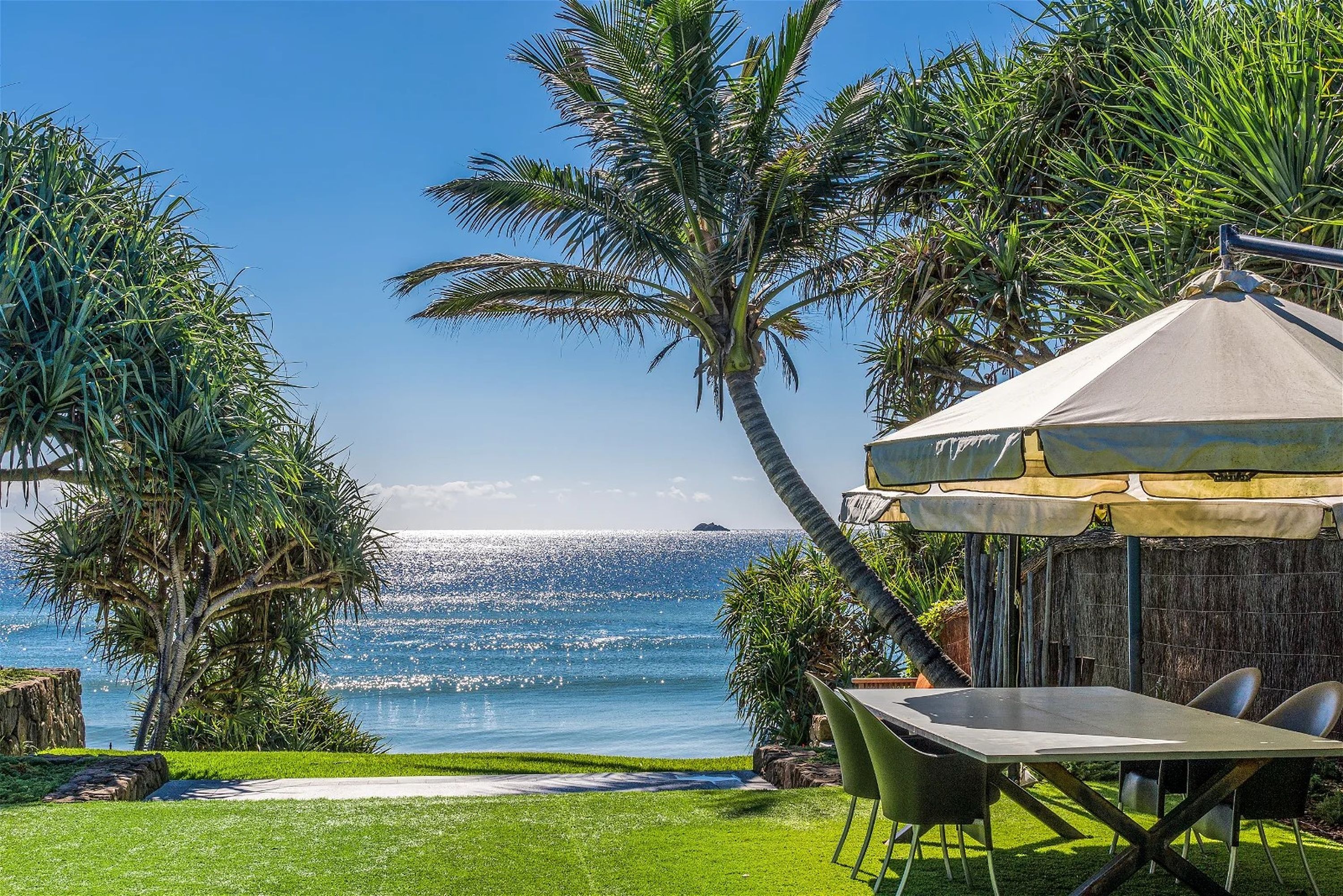 Every room offers stunning views of the sparkling blue Pacific Ocean, calling you to move from bed to lawn to sand and sea. Here, you are as close to the ocean as possible. Recognized among the finest Byron Bay holiday homes, this villa provides an exceptional coastal escape. A stroll along Belongil Beach will lead you to nearby cafes, or you can wander further into the heart of Byron Bay. If you prefer a slower pace, relax on the private covered deck and enjoy alfresco dining in coastal serenity.