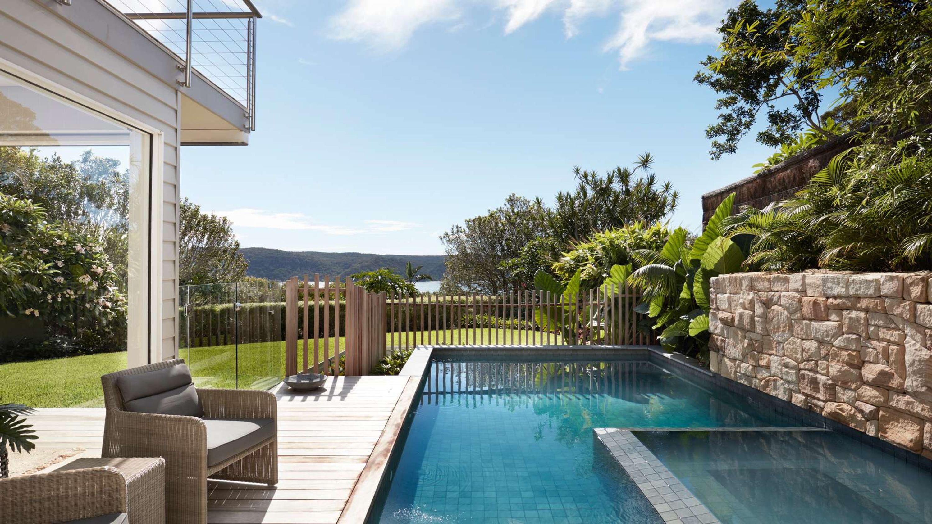 The spectacular views spread across Palm Beach and Pittwater to capture both the best of sunrise and sunset. On the lower lawn is a large grassed yard complete with pool perfect for families. Surrounded by beautiful gardens with manicured lawns the house also offers a hot/cold shower for the keen beach goers to refresh after some killer waves – the main beach of Palm Beach only being about a 5 minute walk!