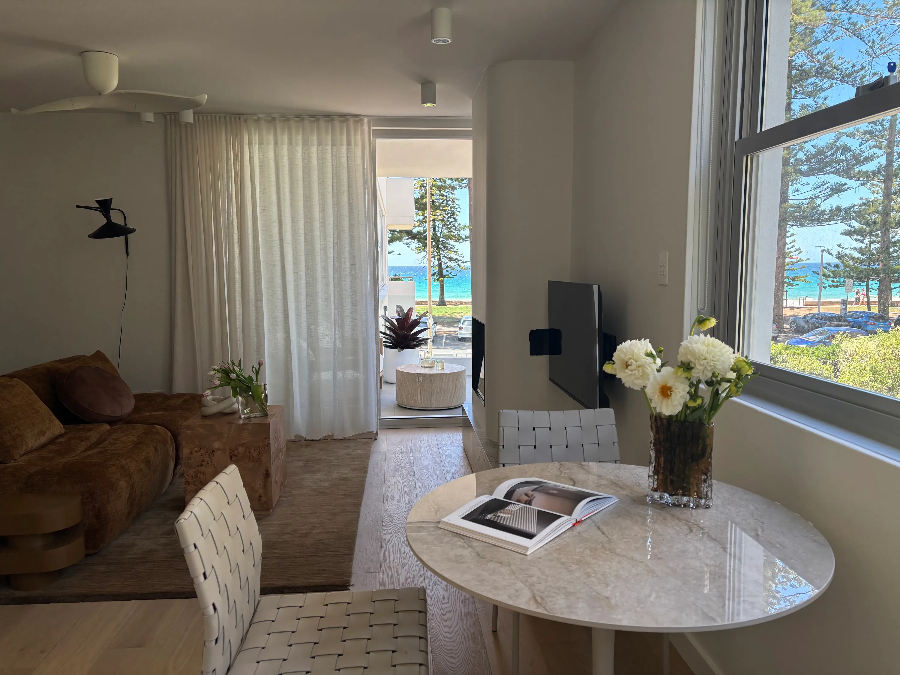 Wake up each morning to mesmerising ocean views and the refreshing breeze drifting in from Manly Beach just across the road. This beautifully renovated coastal retreat offers an uplifting sense of calm, with its fresh interiors, thoughtfully curated furniture, and seamless connection to the outdoors. Enjoy peaceful sunrise moments from the comfort of your living space, or unwind after a day out with the soft glow of sunset over the water. The home’s relaxed elegance and beachside charm create an inviting escape perfect for families, couples, and holidaymakers seeking a refreshing stay.