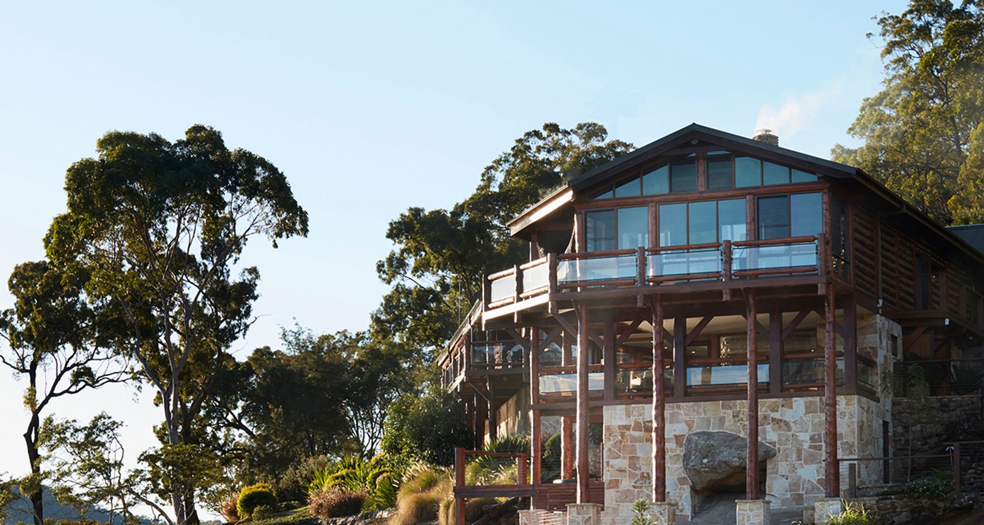 Sitting on the mighty Hawkesbury River is the majestic Sentry Rock. This romantic log cabin’s impeccable styling seamlessly merges the rustic natural tones with modern touches of glamour and luxury. Up to 12 guests can enjoy the extensive spaces, which include well-fitted bedrooms with en-suites, huge open fireplaces, wine cellar, outdoor waterfall, balconies with to-die-for views and heated swimming pool. Don’t fancy cooking? Then let our concierge take care of dining via famous local restaurant Peats Bite to cater for your private dinner, evening function or picnic on the water.